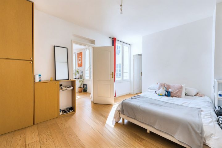 L'appartement comprend une entrée, un séjour traversant ouvrant sur cour uniquement, une cuisine américaine, deux chambres, une salle d'eau et un wc séparé. Appartement lumineux baigné de lumière. Nombreux rangements. DPE : D. Une cave complète l'appartement. Proche du centre hospitalier Lariboisière et du métro La Chapelle et de la Gare du Nord.