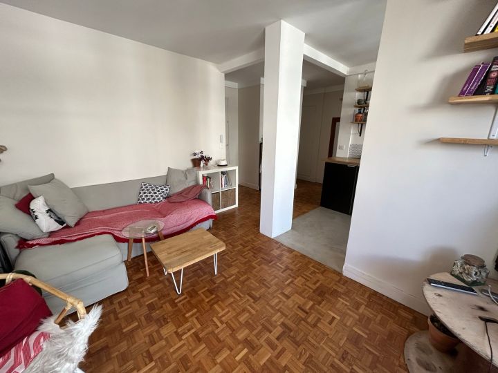 Niché au 6ème et dernier étage avec ascenseur d'un immeuble bien tenu, l'appartement comprend une entrée avec placard, un séjour, une cuisine ouverte aménagée et équipée, une chambre, une salle de bain avec wc et un dressing. Appartement lumineux. Double vitrage général avec volets électriques. Les charges comprennent l'eau froide et le chauffage. Une cave complète l'appartement. Venez vite le visiter !!